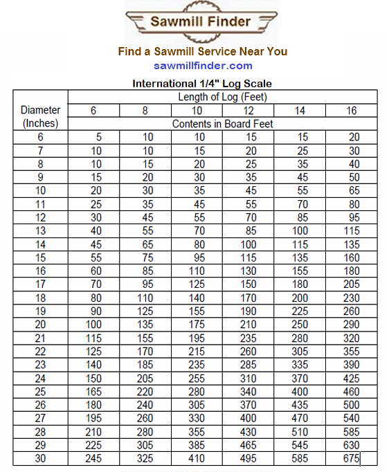 Doyle Log Scale (2507 downloads )International 1/4 inch Log Scale for measuring the board foot content of your logs